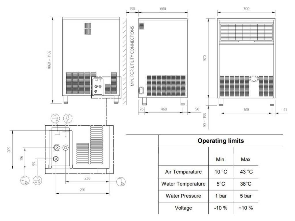 - denní produkce ledu 90 kg/24 h (denní produkce při teplotě okolí 10 °C a teplotě přívodní vody 10 °C)