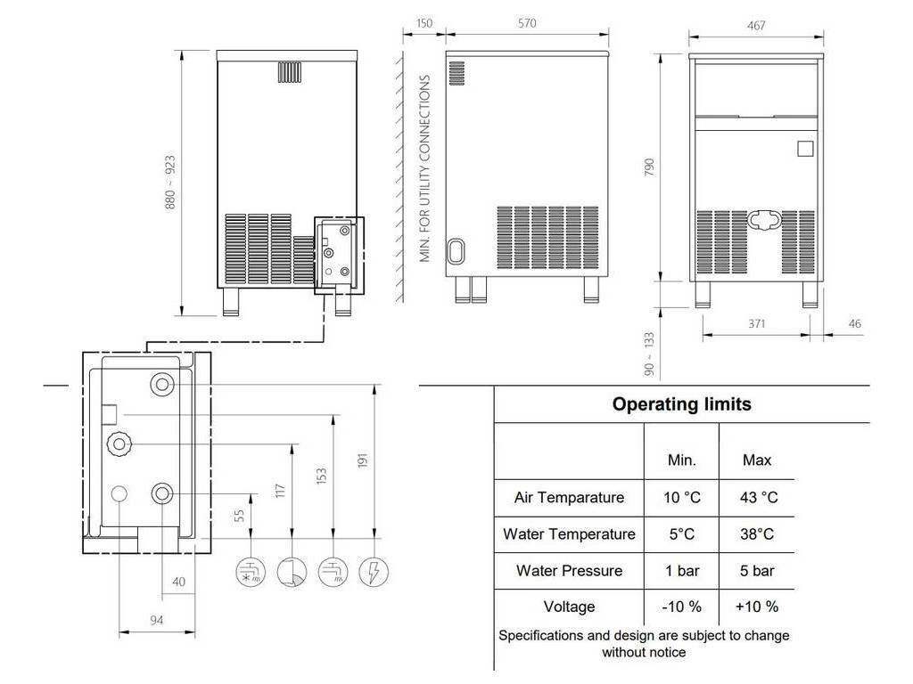 - denní produkce ledu 42 kg/24 h (denní produkce při teplotě okolí 10 °C a teplotě přívodní vody 10 °C)