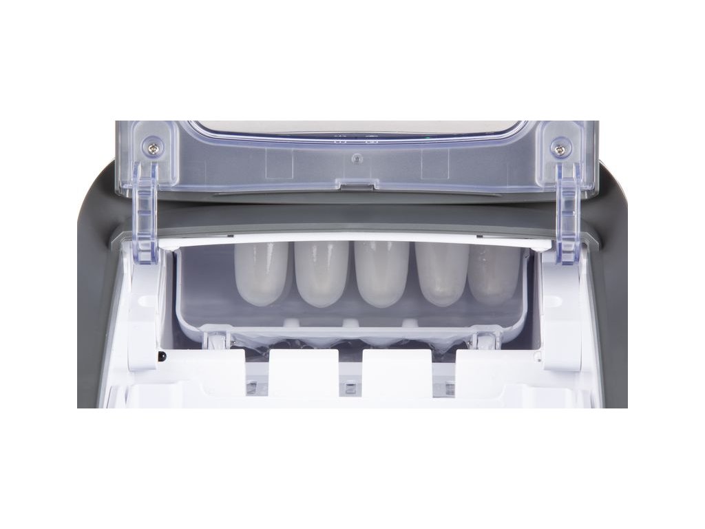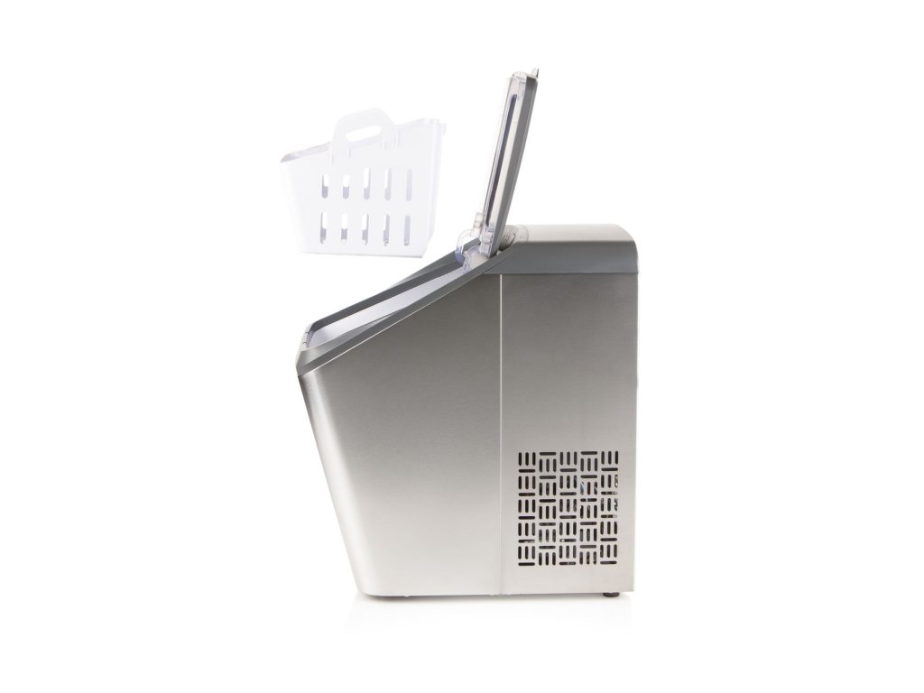 Výkoný výrobník ledu v nerezovém provedení vybavený vlastním kompresorem umožňujícím připravit až 15 kg ledových kostek za 24 hodin. Výrobník dokáže každých 8 minut vytvořit 9 kostek ledu u kterých si můžete zvolit ze dvou velikostí. Přístroj za vás hlídá množství vody i množství vytvořených ledových kostek a vždy vás upozorní na prázdný zásobník vody, nebo plný zásobník ledu a automaticky dočasně přeruší provoz. Díky průhlednému víku máte nad výrobou ledových kostek plnou kontrolu, aniž byste museli přístroj otvírat. Obsluha přístroje je velice snadná a pro usnadnění údržby přístroj disponuje také funkcí samočištění.