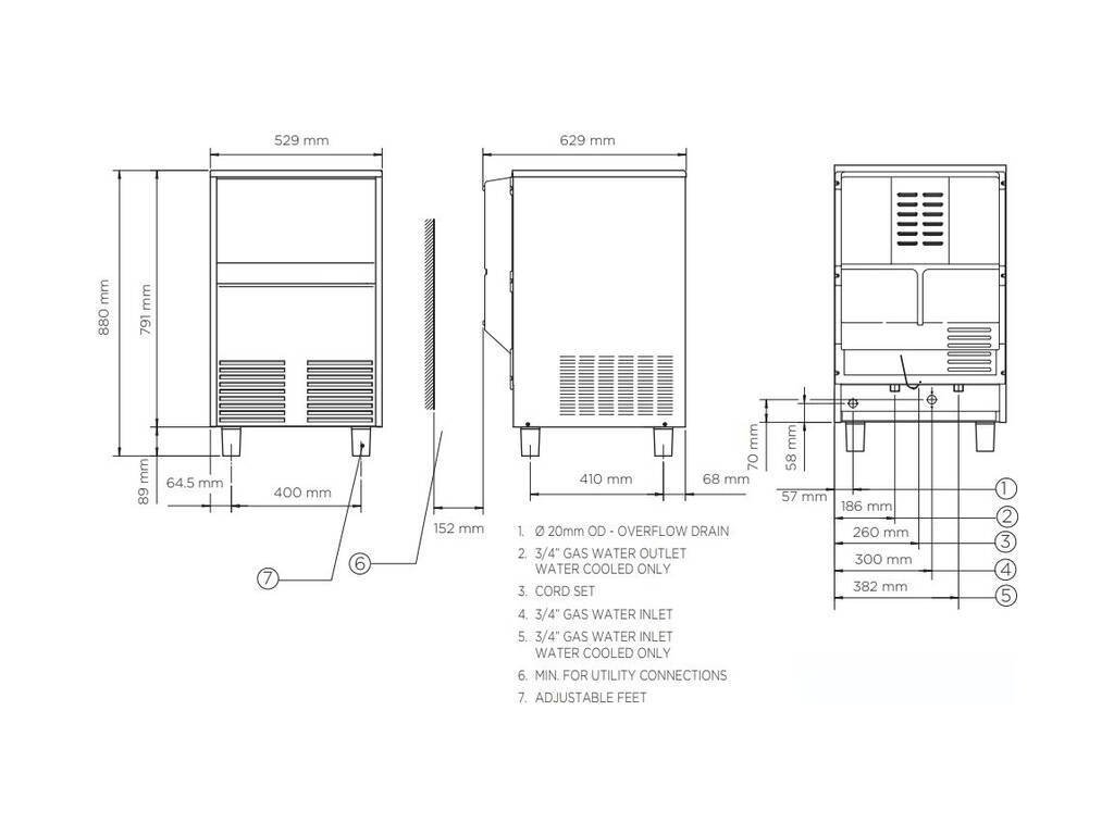 - produkce ledu 120 kg/24 h (denní produkce je udávána při teplotě okolí 10 °C a teplotě přívodní vody 10 °C)
