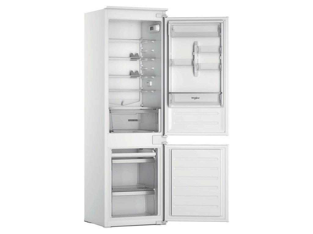 Přednosti této vestavné kombinované chladničky Whirlpool: bílá barva. Skleněné police, které poskytují pevnost i eleganci. Senzory 6. SMYSL, které automaticky snižují teplotu uvnitř spotřebiče po přidání nových potravin, čímž snižují spotřebu energie. Robustní přihrádka na lahve pro bezpečné uložení lahví.