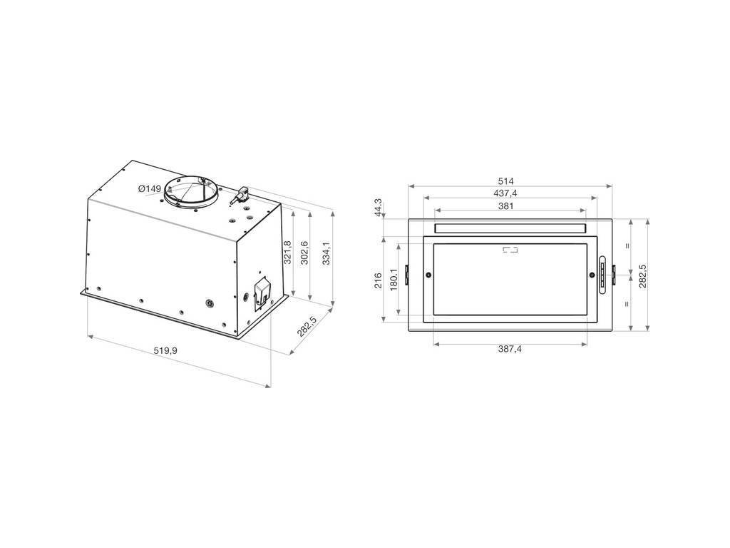 Integrovaný odsavač par - ideální do kuchyní, kde není přímo na očích.