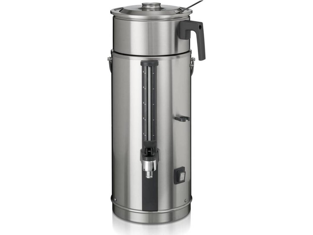 - celonerezová dvouplášťová plně izolovaná nádoba s víkem, nekapajícím kohoutkem a skleněným vodoznakem